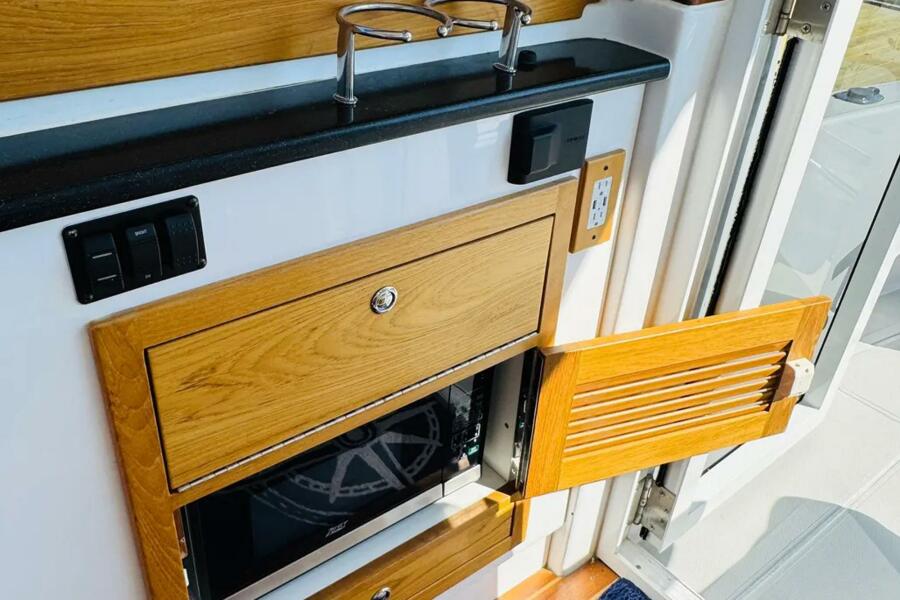 It's floor plan design opens fully to the cockpit allowing everyone onboard to share in the adventure.