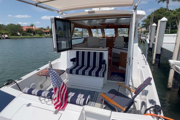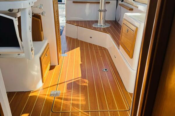 The climate-controlled salon, galley and helm are all on the same level with the cockpit making the area more spacious and comfortable to move about.